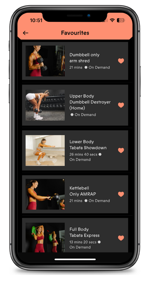 Loved a workout? Save it to your favourites folder. Quick and easy to jump straight back in.